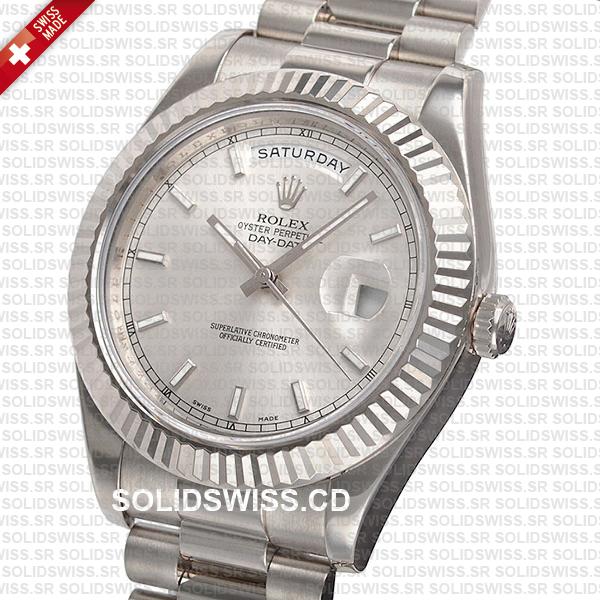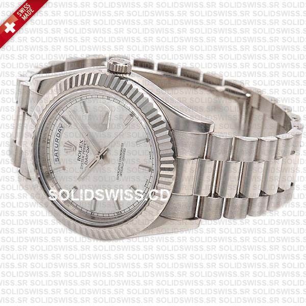 | BRACELET | Solid 904L steel, real 18K White Gold PVD Plated President with Concealed Crownclasp Large threaded screws Solid end links |