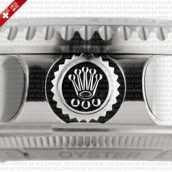 | CRYSTAL | – Scratch-proof Swiss Sapphire 5.5mm thick with colorless anti reflective coating inside out – Cyclops lens over date with 2.5x magnification power – Laser etched small Rolex Crown at 6 o’clock – Same thickness and shape as genuine  |