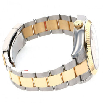 | BRACELET | – Oyster design, flat three-piece links – Solid 904L Stainless steel with thick 18k Yellow Gold wrap and DLC scratch-protection coating – Solid threaded screws – Folding Oysterlock safety clasp with Easylink 5 mm comfort extension link |