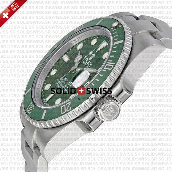 | DIAL | Hulk. Green, Genuine SuperLuminova™ Luminous Markers, Lasts up to 9 hours. Correct Date font and size. New Rolex Models “Maxi dial” (meaning larger markers than the previous design). Detailed hands, prints, engravings & inserts 100% same as genuine. |