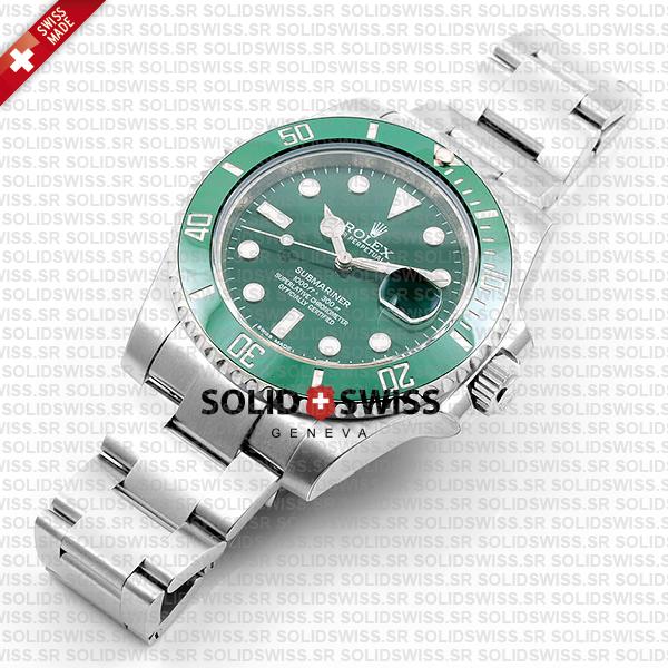 Having Rolex Swiss Clone 3135 movement, encased with 41 mm robust stainless steel, this Submariner with green dial truly signifies prestige. The watchmakers have assembled the authentic raw materials with thorough detailing. Men finally have their timeless possession to boast of!